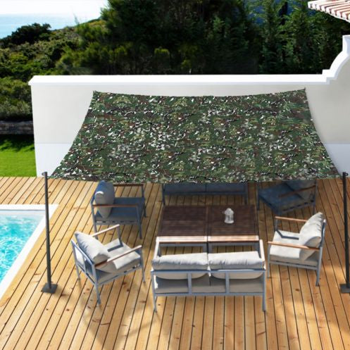 • Καμουφλάζ Σχέδιο: Το σχέδιο καμουφλάζ συγχωνεύεται τέλεια με το φυσικό περιβάλλον, προσφέροντας προστασία και διακριτικότητα σε χώρους που χρειάζονται κάλυψη από τον ήλιο ή την άποψη των περαστικών.
